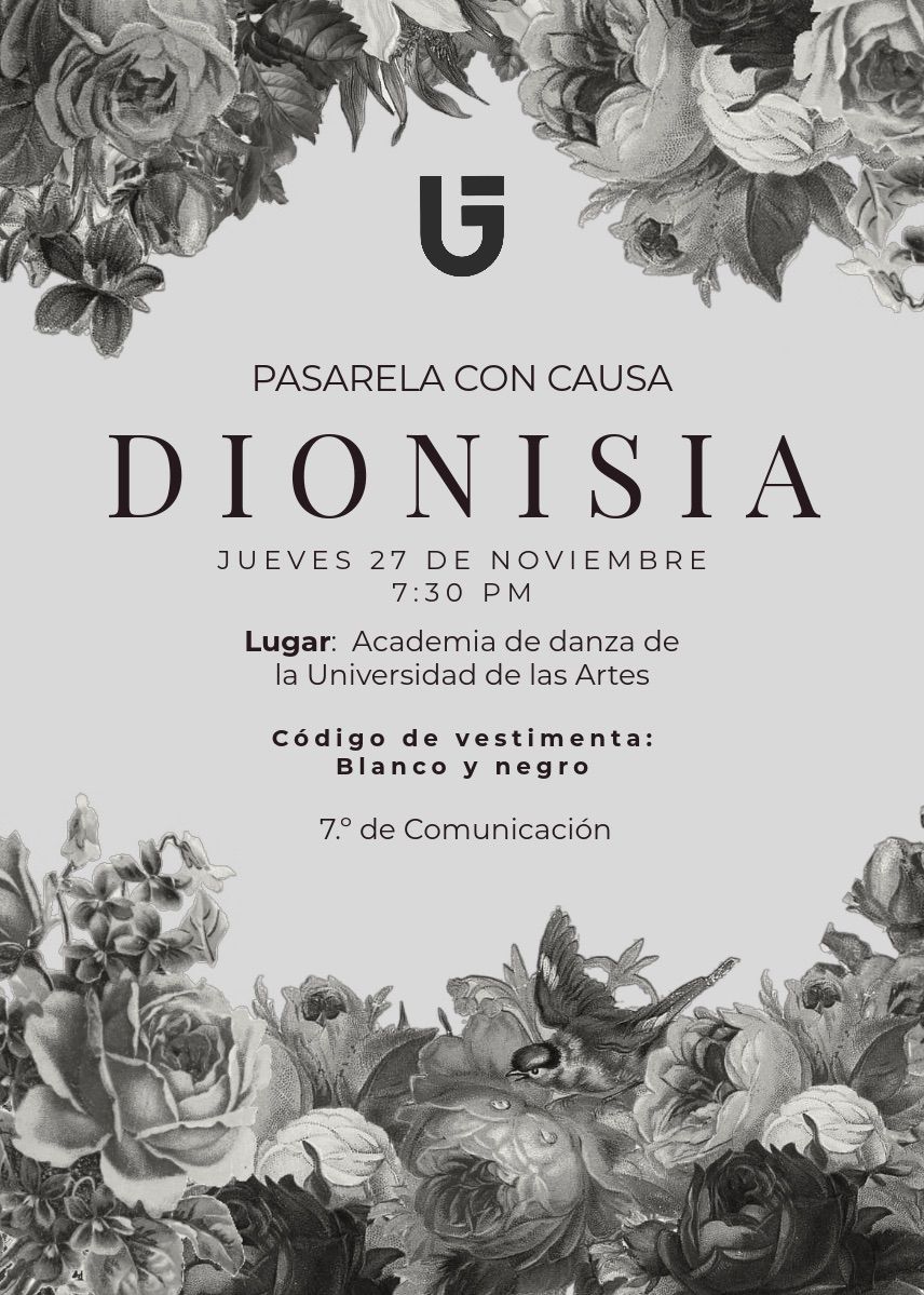 El día de ayer Jueves 19 de Noviembre, en rueda de prensa, estudiantes de la carrera de Comunicación de 7° Cuatrimestre dieron a conocer los detalles de su próximo gran proyecto: la pasarela “Dionisia" que se llevará a cabo el jueves 27 de noviembre, a las 19:30 horas, en la Universidad de las Artes, dentro de la Academia de Danza.. Bajo la tutela de la Mtra. Lizette Carpintero, titular de la materia de Organización de Eventos de Moda, los alumnos han preparado una experiencia estética que promete desafiar las convenciones tradicionales de las pasarelas.